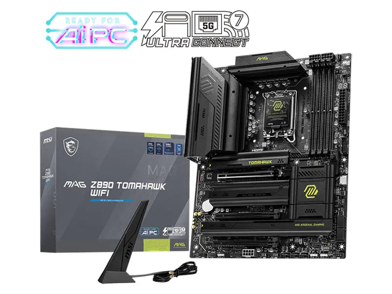 MAG Z890 TOMAHAWK WIFI is designed for gamers with a stable, durable and DIY friendly foundation for their PC builds. Coming up with Killer Wi-Fi 7 solution and 5G LAN, Thunderbolt 4, PCIe 5.0 solutions, Supplemental PCIe Power and exclusive EZ DIY features, it's ready for the battlefield of Intel Core Ultra processors.